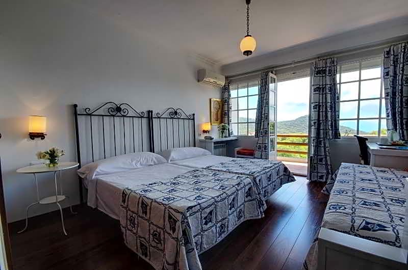 Spacious room with a terrace overlooking the gardens. It is equipped with central heating and a TV. The bathroom has a bath and includes toiletries.